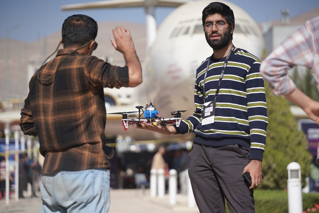 Behzad Tabatabaei from Tehran, competing in both group flight and real-environment simulation with a four-member team from Sharif University of Technology, University of Tehran, and Amirkabir University, said all drone parts were supplied disassembled, requiring teams to assemble them before flying. He noted the high skill level of the teams and added that group flights are more complex than single-drone events due to the level of precision and coordination required.