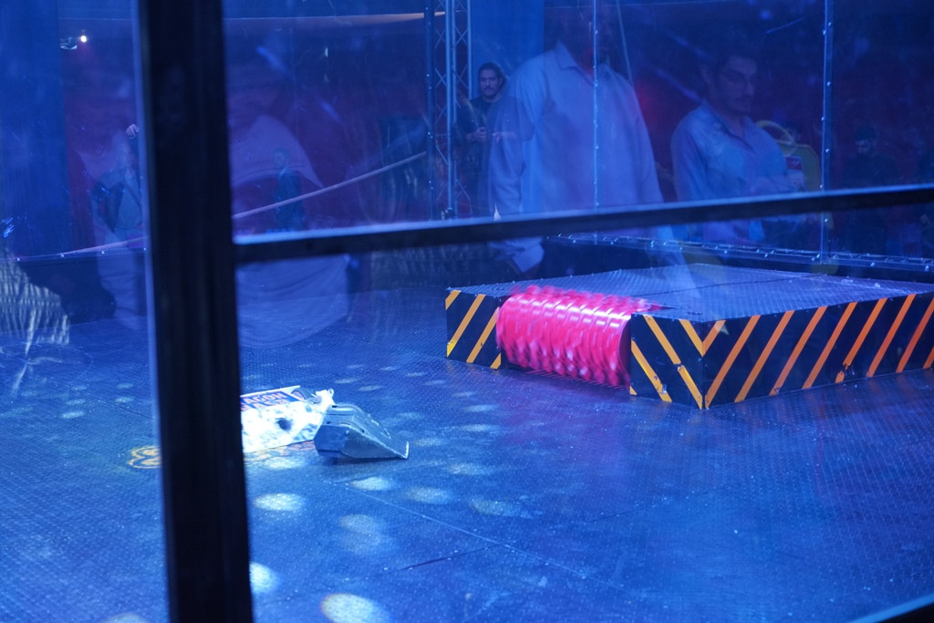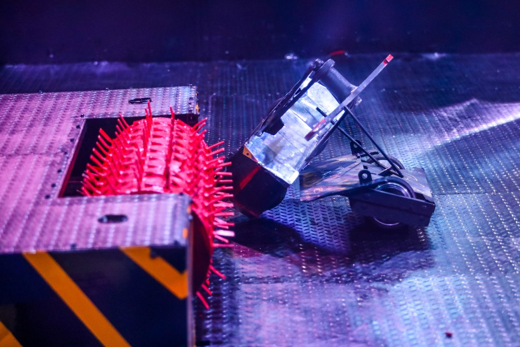 - Match 5: Black Tornado, optimized for speed and destructive lifting with scooter motors and batteries, faced the University’s slope‑deck robot in a spectacular clash.