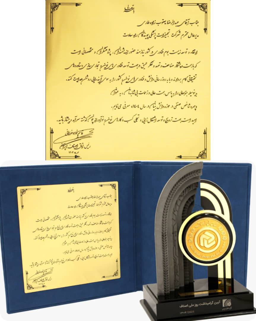 On October 15, 2025, Abdulreza Yaghoubzadeh Tari — CEO and Chairman of the Board at Pooyandegan Rah Saadat Company — was recognized as a distinguished figure in the nation’s knowledge-based business sector, for his impactful role in developing indigenized technologies and forging stronger links between knowledge-based enterprises and Iran’s trade unions.