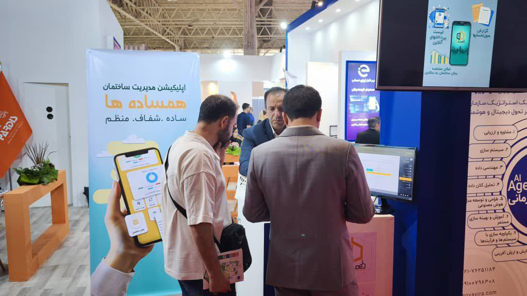 The IIID exclusive pavilion at the 28th ELECOMP Exhibition witnessed high visitor turnout, featuring fifteen technology companies including Hoshmand Zarrebin, Digital Negaran, Mediagostar Mana, Easy Hesab, Faran, Novavira Innovators, Electronics Hamrah Data, Runners at the Edge of Science, Rahbord Tejarat Eastice, Aqua-Faran, Tarh & Tose’e Pardazesh, Toranj Data, Fan-Asa, Fanavaran Hourad, and Hoosh Sazan Asr Ayandeh.