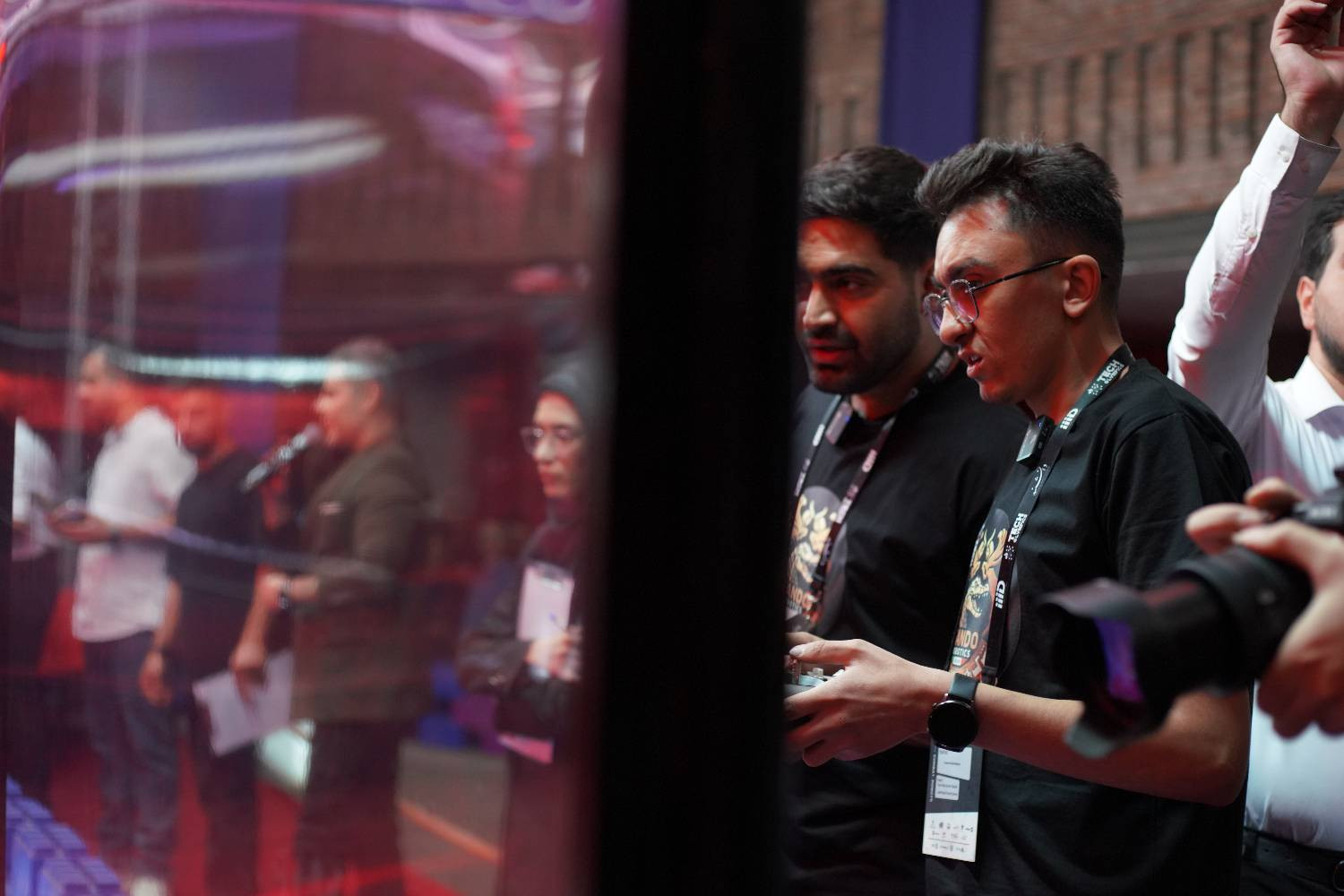 Crowds packed the main robot arena to witness intense battles between four heavyweight teams: Diako, University of Science and Technology 1, University of Science and Technology 2, and Gando. Following safety protocols, the upper tiers of the venue were evacuated due to potential flying debris, and spectators gathered around the main cage for an up-close view.
